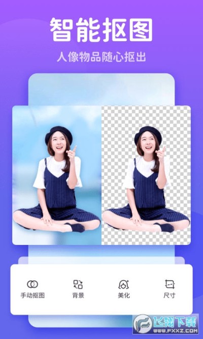 2、是零门槛抠图P图工具,发丝级抠图效果,一键更换景点背景,秒变星空、天空、可爱背景,增加艺术滤镜;