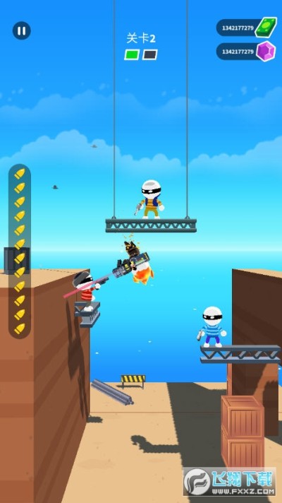 1、诙谐搞笑的关卡风格,又搭配上非常可爱的火柴人构造,注意利用地形来完成击杀。