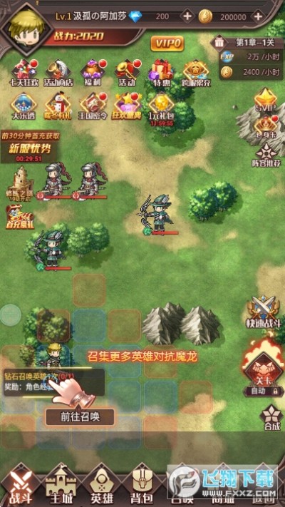 初入异世大陆可先以主线攻略为主,遇到难关时获取高阶英雄并进行养成,可以快速通关哦~通过关卡或副本时,会掉落大量绿色装备箱和英雄箱,前期也可以获得大量宝珠进行英雄和装备召唤,勇士大人们可通过合成获取SSR英雄和装备哦!