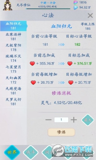 修炼战斗、灵根淬炼、神装秘籍、法宝仙丹都可以帮助你升级升阶;