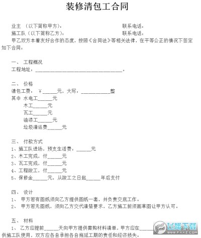 本篇《装修清包工合同》的内容较为详细,从工程概况、价格、付款方式、材料等等方面都进行了说明,有装修工程方面需求的可以参考本篇文档。