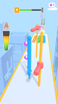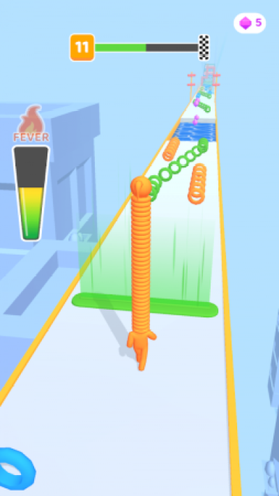 1、玩家收集圆环来让弹弓人的身体变得更长;