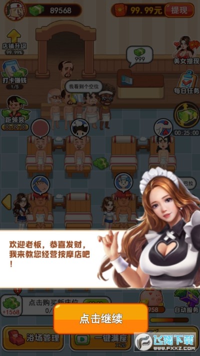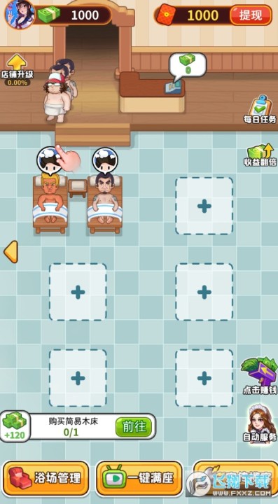 2、成为洗浴中心大亨,管理不同业务。打算投入资金,打造高级服务设施吗?您可以通过加薪,调动员工积极性,让他们拥有更高的服务效率。