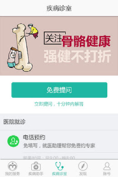 1、免费提问,任何骨质疏松疾病相关问题均可直接提问,与医生实时回答以及在线交流;2、预约挂号,预约专家的服务,帮您消除去医院排队挂号的烦恼;3、为您提供骨质疏松疾病预防、治疗、保健等疾病专业知识,让您拥有健康、品质生活。