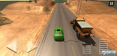玩家需要使用方向,加速刹车按钮控制车辆的方向和速度,是铁链保持正常,共同行使一段距离后,即可通关。