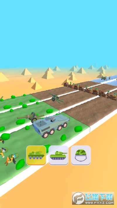 游戏中是一条笔直的赛道,分为多个不同场地,需要玩家在每前进一步时,选择正确的坦克射击。