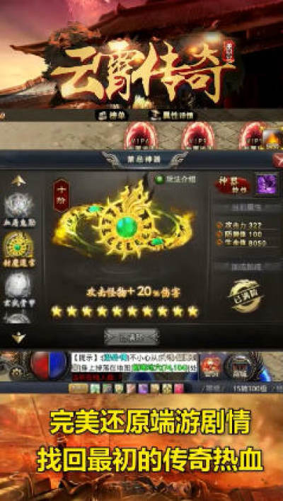 云霄传奇最新版是一款相当刺激的传奇手游,游戏延续了经典战法道三职业的设定,百人团战大乱斗和好友组队冒险收集材料,超高爆率,小怪也掉极品神器,喜欢的小伙伴速速来下载吧!