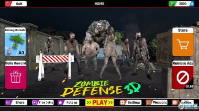 僵尸防御3D生存是最冒险的僵尸僵尸游戏,3D游戏效果。你在一个僵尸战争,很多僵尸应该攻击你,你会争取你的防守和生存。