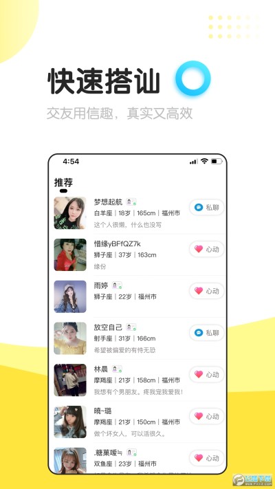 3.智能化的系统根据兴趣标签为你匹配与你性格相符合的交友对象。