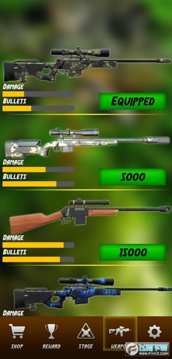1、枪支的种类非常丰富,通过关卡获得金币进行解锁
