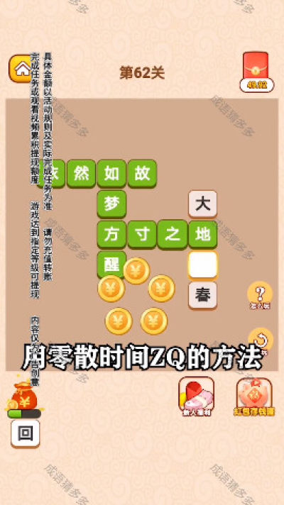1、惊喜的猜成语游戏,想要赢红包还是非常容易的,前期题目很简单;