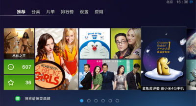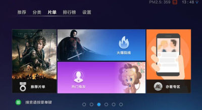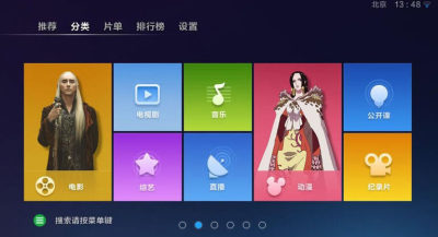 专门为720p/1080p高清大屏幕显示设备和遥控器操作优化的用户界面,使用传统遥控器操作,支持“断点续看”和“收藏”功能。