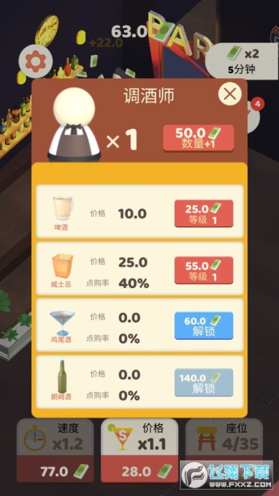 2、扩大您的酒吧,建立一个更大的团队,丰富您的菜单,并解锁世界一流的酒保!