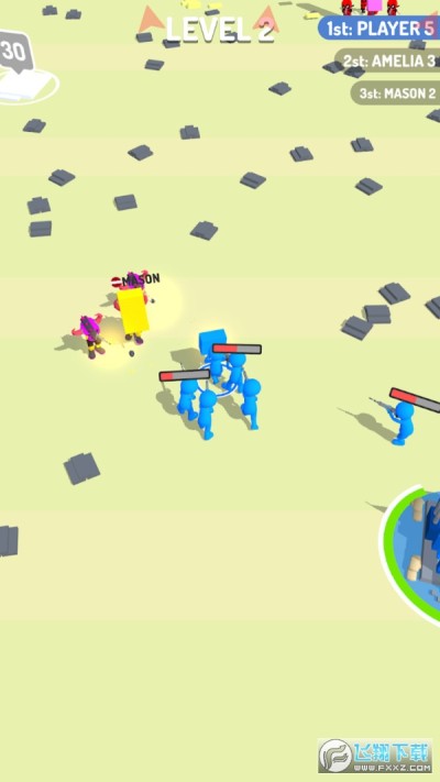 争霸大作战是一款休闲射击类手游。《争霸大作战》游戏中,玩家操控游戏角色在赛场上召集和自己颜色一样的小人,一起对抗场上另外一队橡皮人,激烈的枪战!感兴趣的小伙伴记得点击下载游戏噢。