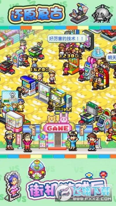 1、像素复古的画风,将这个魔性的街机厅正式举办起来。