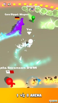 类似于贪吃蛇的游戏,玩家只需要控制人物走位,利用身体后面的技能消灭敌人,越来越小的游戏区域将会使你更快的消灭对手。