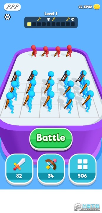 合成低级士兵,使用高级士兵进行战斗,消灭所有的敌人后即可开始下一个关卡的挑战。