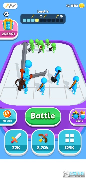 在合并战无限金币版这款游戏中,需要通过合成进化的方式,升级更高等级的士兵,多种职业进行合理搭配能够快速的消灭对手,击杀对手后可以获得丰厚的游戏奖励。