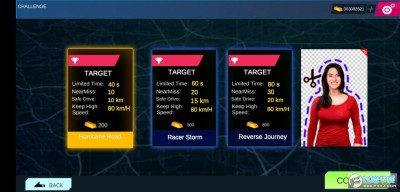 玩家可以根据自己的喜好任意的选择不同的模式进行挑战,每一种挑战模式获胜的条件各不相同,玩家需要操纵自己的赛车在不同的地图环境下获得游戏胜利