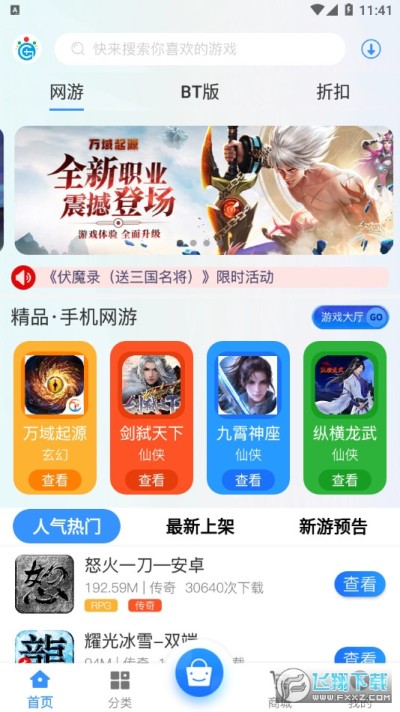 冠隆手游盒子是一款游戏资源丰富的游戏下载平台,这里游戏种类齐全,大家可以任意搜索下载游戏,无论是网游、单机还是破解游戏这里都有,平时喜欢玩游戏的小伙伴赶紧来飞翔下载吧。