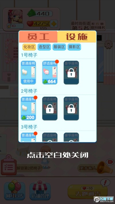 我是大明星去广告版最新版是一款二次元风格的模拟养成类手游,玩家们可以养成一名美少女经营自己的化妆店,接待需要化妆的客人赚取金钱并不断扩张升级自己的设施,参加各种比赛根据要求搭配不同的发行妆容提升知名度,吸引更多的客人打造顶级国际巨星!