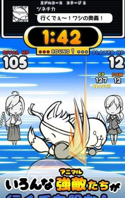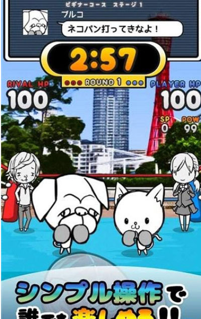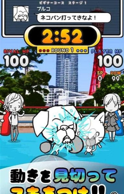 《猫拳!》是通过点击和划动的简单操作来进行的本格派动作游戏。根据对手的行动,玩家要分别利用“攻击”、“闪避”和“必杀技”操控猫咪。另外还搭载了自定义机能,主人公角色的猫咪的技能、战斗风格等都可以根据自己的喜好进行设置。等级升的越高,可选择的延伸能力就越多哦。