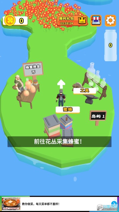 养蜂达人安卓版是一款lowpoly画风的模拟经营养成手游,玩家们将要在游戏收集花蜜来兑换金币,使用金币升级购买更多的蜜蜂,不断的提升自己瓶子的存储量来装取更多的蜂蜜,扩展自己的领地解锁更多种类的花蜜,想要体验养蜂人的小伙伴可以尝试!