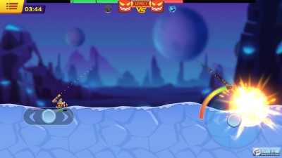 机器人坠毁安卓版是一款卡通风格的射击对战类手游,玩家们可以控制自己的机器人,在2D横版场景里调整射击的角度和力量进行对战,使用自己的走位躲避敌人的攻击,攻击空中的机器人获取强里的buff,喜欢的小伙伴快来下载试试吧!