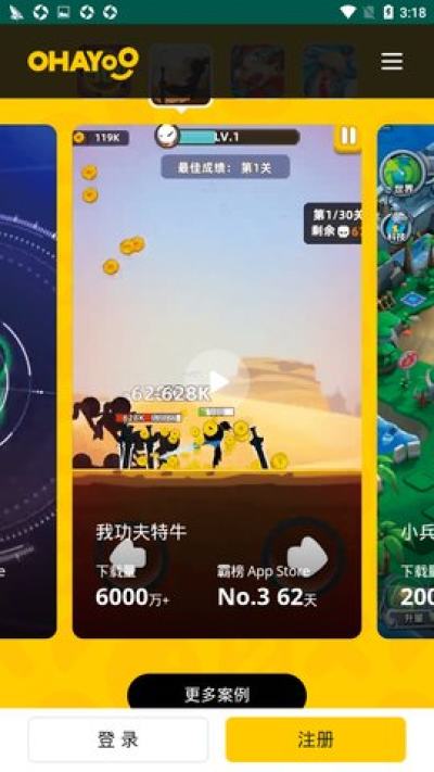 ohayoo游戏盒是一款字节跳动旗下的休闲游戏聚合平台。现如今,ohayoo发行游戏超150,数月活跃用户数突破8000万,累计下载量已达5亿!在这里,你可以下载到ohayoo全部游戏。开发者注册,享更多福利。下一个爆款休闲游戏,可能就来自于你!