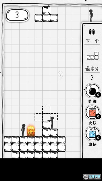 3、火柴人和俄罗斯方块的结合,玩家可以在消除方块的同时解决火柴人。