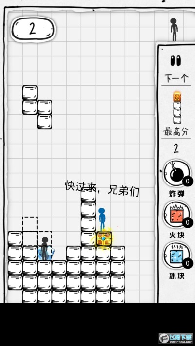 1、火柴人和俄罗斯方块的结合,玩家可以在消除方块同时解决火柴人。
