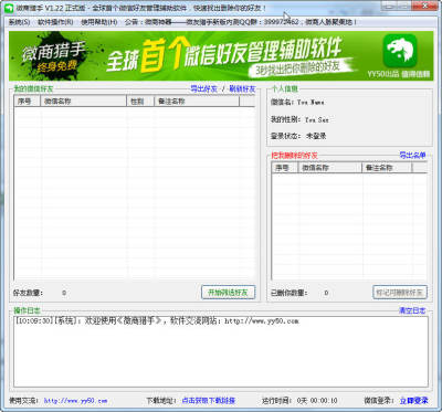 微商猎手是一款完全绿色免费的由YY50推出的首家微信好友管理辅助软件。软件功能强大,它最快只需3秒钟,就能找出已经把你删除的好友。从此我们无需诚惶诚恐群发消息,就能无声无息把他们筛选和标记出来。