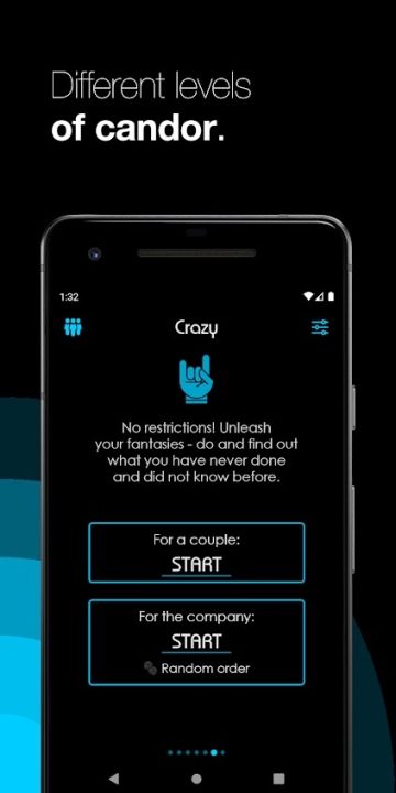 您对第一次约会感到尴尬,懈怠和尴尬吗?只需启动Truth或Dare 18+夫妻模式,您将立即找到交流的常见话题。您会学到很多彼此的新故事。不寻常的任务会融化冰块,让您在约会时更加互相信任。
