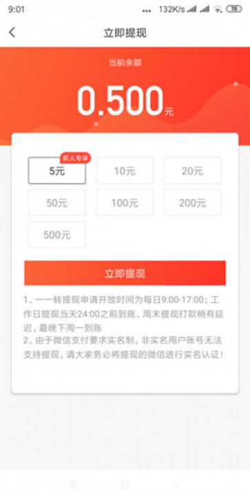 3、风风转首提门槛低,永久5元提现,24小时内审核到账,每人每天限提一次