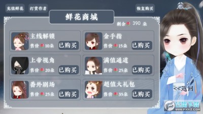 游戏已完成内购破解,商城中可免费进行内购,且可获的无限鲜花。