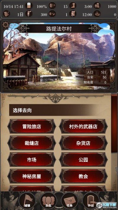 可以雇佣冒险者解决村落的事件,也可以启程前往更大的城镇。