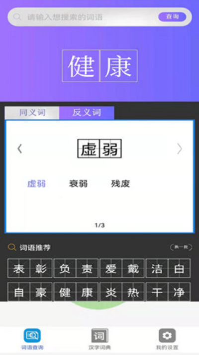 3、软件里的字典、词典功能,方便用户对于汉字、成语的查询。方便用户的学习。