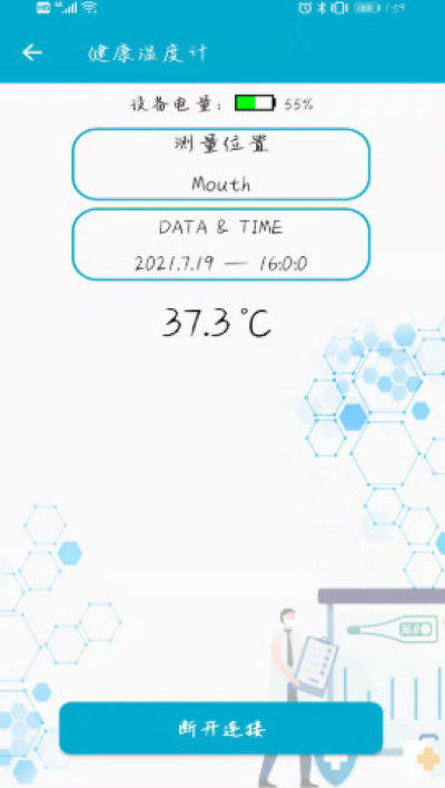 在健康温度计的功能中,可以让用户查看自己每时每刻的温度信息。