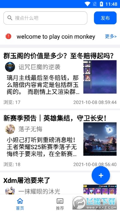 玩币猴app最新版,一款专为大众打造的游戏论坛应用,专注于游戏资讯,社交,攻略,辅助等内容,帮助玩家们实时线上游戏互动,查看攻略,享受一站式游戏服务!