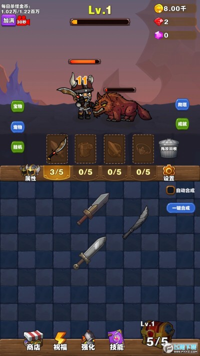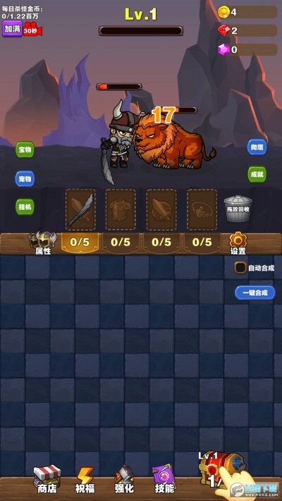 勇者试炼合成安卓版是一款Q版卡通风格的休闲放置类手游,玩家可以通过合成相同的武器防具不断的升级等级,在游戏里不断的消灭逐步变强大的怪物,获取金钱升级自己的属性技能,还有宠物系统和爬塔玩法可以体验,喜欢的小伙伴快来下载试试吧!