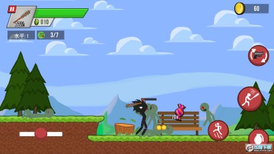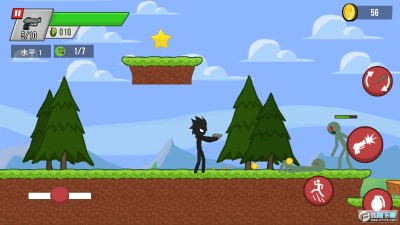 3、游戏操作十分简单,游戏中玩家只需要滑动方向摇杆就可以控制火柴人战士移动的方向,点击射击按钮就可以开枪射杀僵尸和怪物;