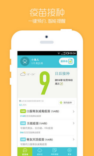 定制接种计划:根据宝宝年龄,灵活定制接种计划并智能提醒接种时间;
