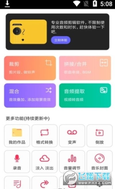 免费专业音频剪辑软件,帮助你轻松制作手机铃声、视频配音等,极简操作风格,上手很简单。
