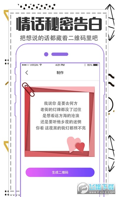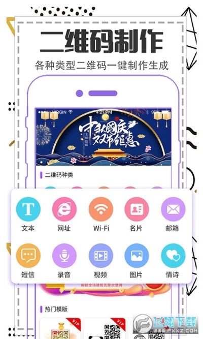 1、支持WIFI密码二维码、商品价格码、防疫健康二维码,情书二维码等10余种二维码类型;
