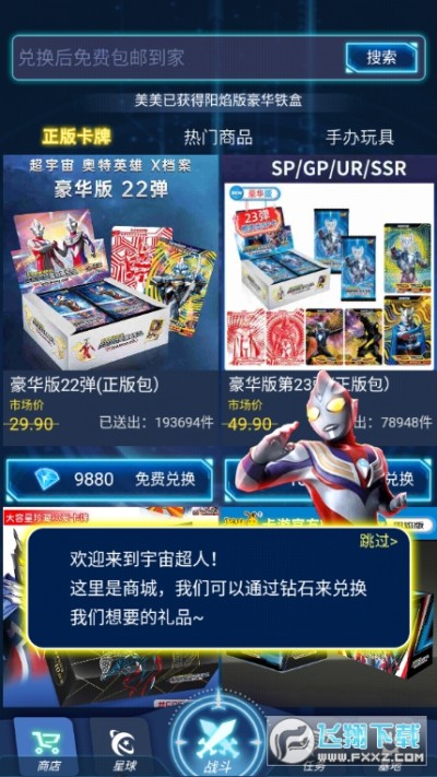 宇宙超人游戏是一款经典的奥特曼卡片游戏,游戏中玩家可以获取不同的奥特曼英雄,史上最全奥特曼英雄图鉴,在这里不断升级解锁你的卡片,海量的游戏主线任务等你完成,每天签到就能领取钻石,对游戏感兴趣的话不妨点击下载!
