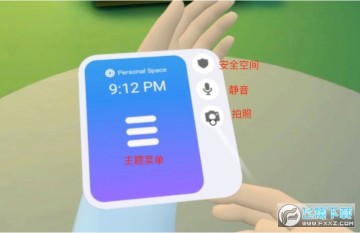 之后,有一个女声语音导览会引导你的每一步操作,以及解释Horizon的运行规则。她会告诉你,低头看向你的左手腕就能随时触发菜单选项,手腕菜单包括三个内容:Horizon主题菜单、声音开关、安全空间和拍照。