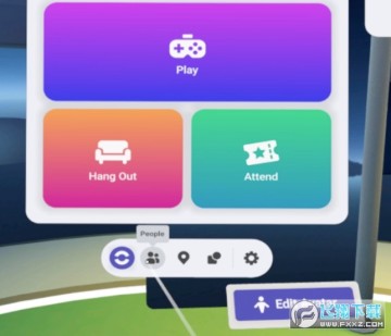 先来说说主题菜单。在Horizon Worlds里,你目前可以干四件事:一是进入Play去玩一些小游戏;二是在Hangout菜单下进入多人房间或公共广场跟人社交;三是通过Attend来参加一些定时举办的主题活动;四是独立或邀请朋友来通过Create功能来建造自己的世界。
