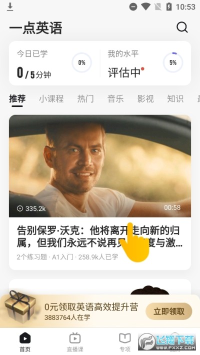 影视原声跟读,AI系统进行评分,帮助用户快速的学会各种类型的口语。