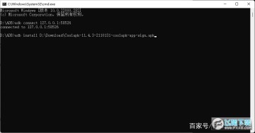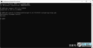 4. 在弹出的cmd窗口中输入“adb connect xxx”并回车(xxx为第1步中获得的的地址)。