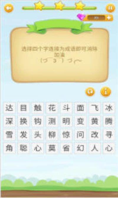1.玩法非常的简单,利用自己的成语知识来完成闯关答题,一定要选择正确的字填入空格中;